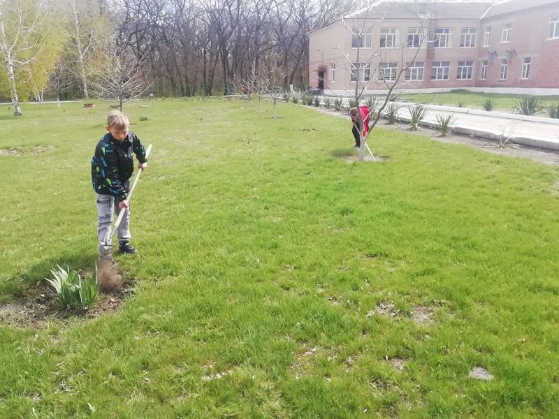 Учащиеся начальной школы с энтузиазмом подмели дорожки на аллейках, а ребята из 5-10 классов пропололи и убрали траву, сделав школьный двор ещё чище и уютнее. Сотрудники школы побелили бордюры и деревья, придав территории свежий и ухоженный вид.