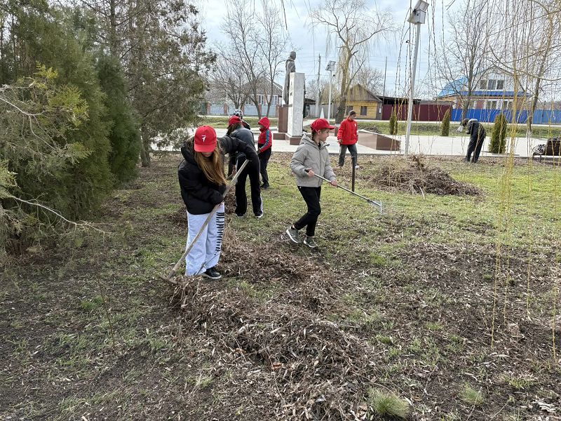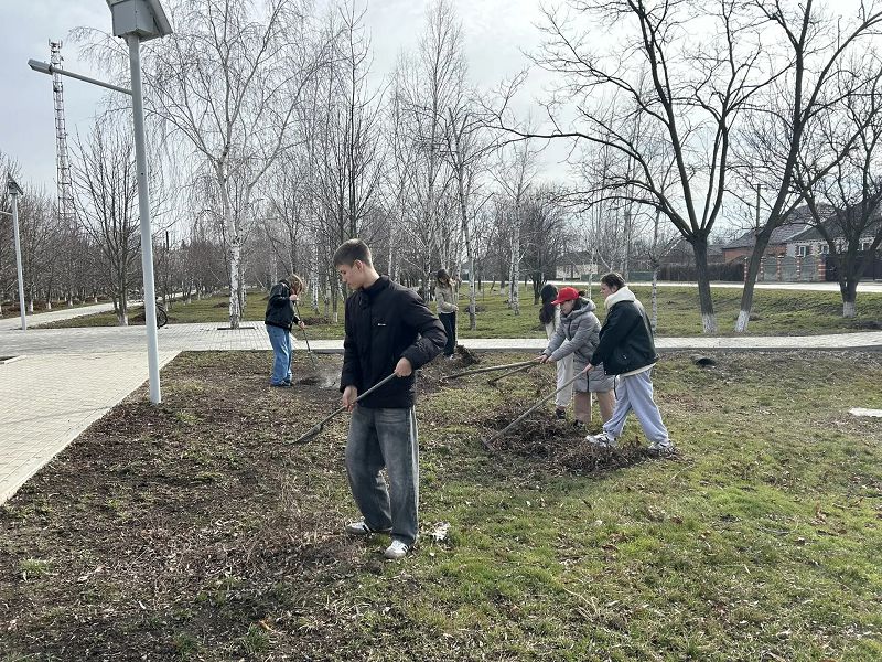 В этот погожий день 25 неравнодушных участников первичного отделения Движения Первых МБОУ Скосырской СОШ собрались вместе, чтобы привести центральный парк нашей станицы в порядок после зимы.